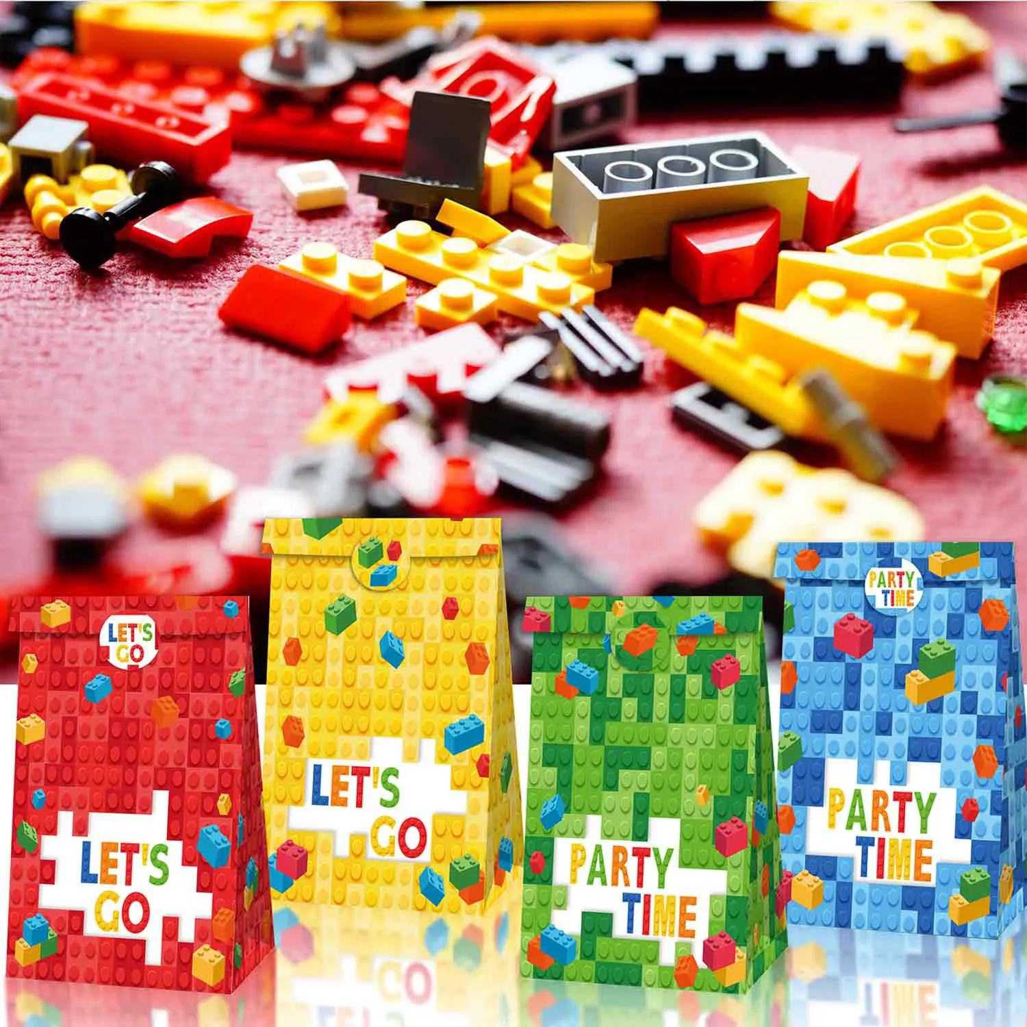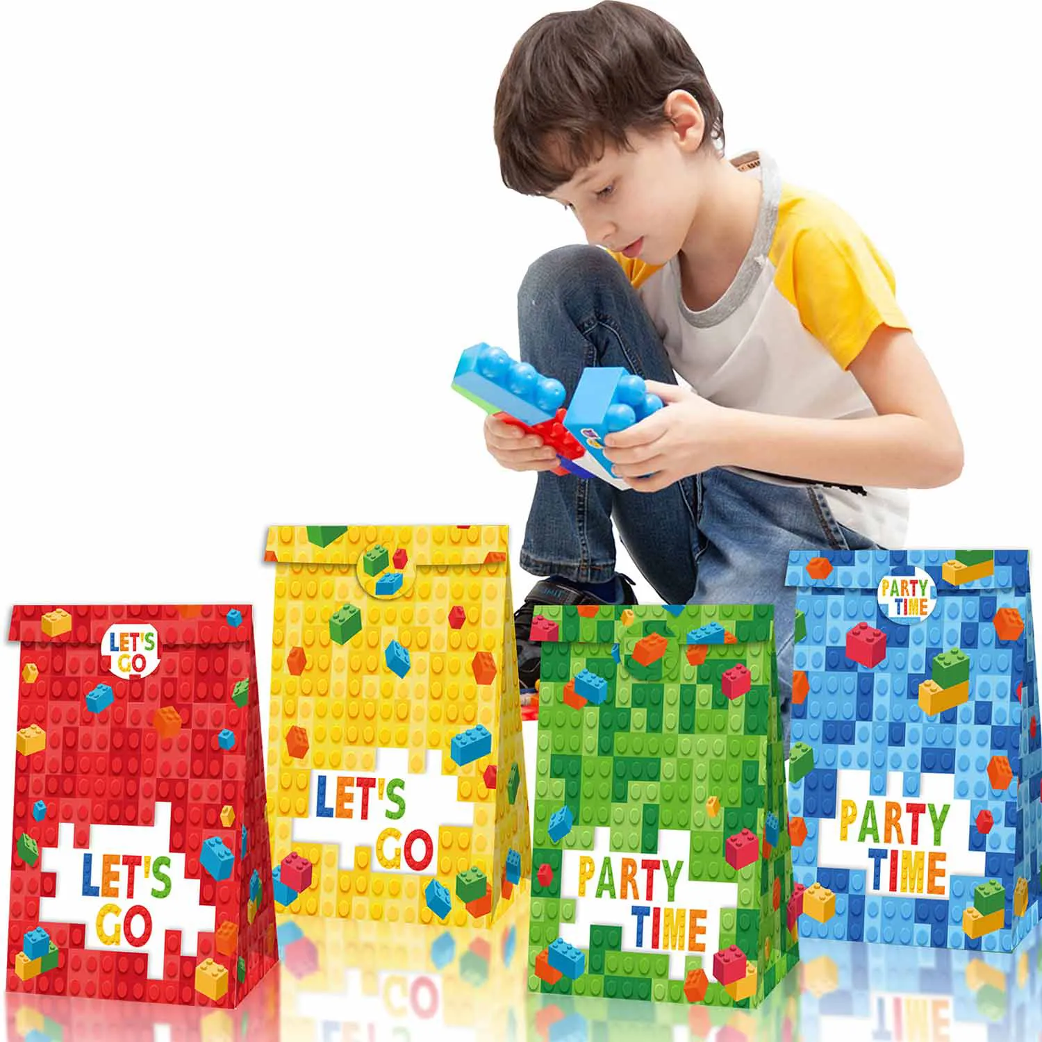 JIELEN 12 PCSのビルディングブロックギフトバッグ、ビルディングブロックテーマの紙袋、ショッピングバッグ、クラフト紙袋