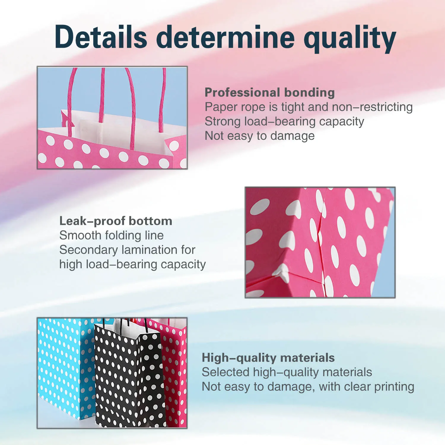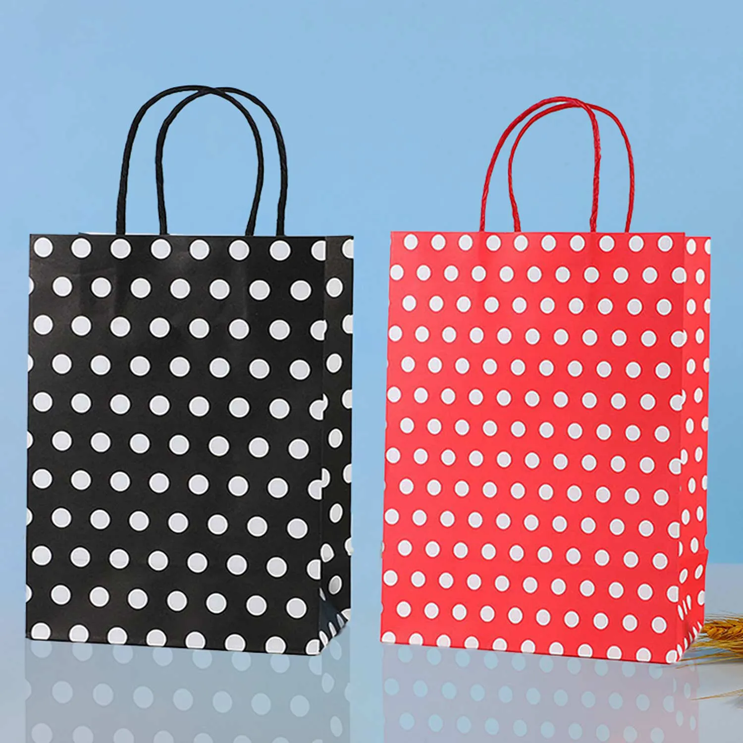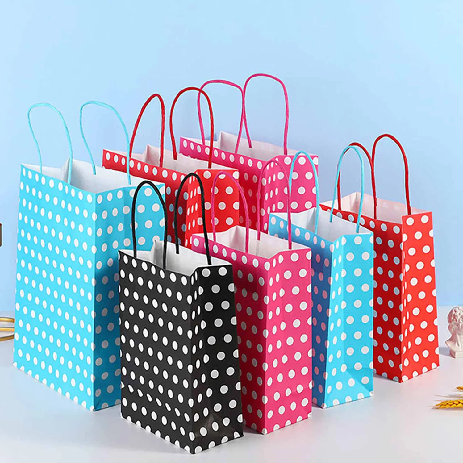 ファッショナブルなドットギフトバッグの包装: 4色の水玉模様でデザインされており、各色に4つのピースがあり、合計16個です。この紙袋はスタイリッシュで目を引く外観をしており、ギフトラッピングに最適です。