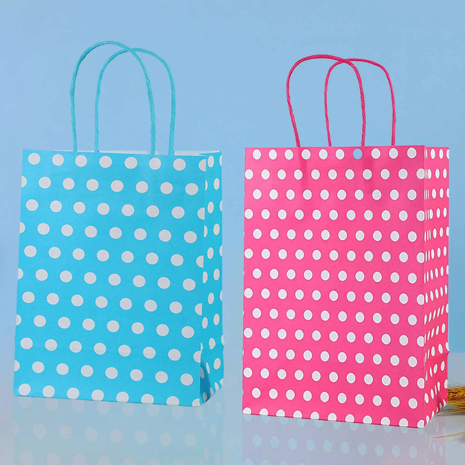 JIELEN 16個セットのカラフルなギフトバッグ、4つのリボンハンドルの紙製ギフトバッグ、かわいい水玉模様の紙製バッグ、クラフト紙製バッグ