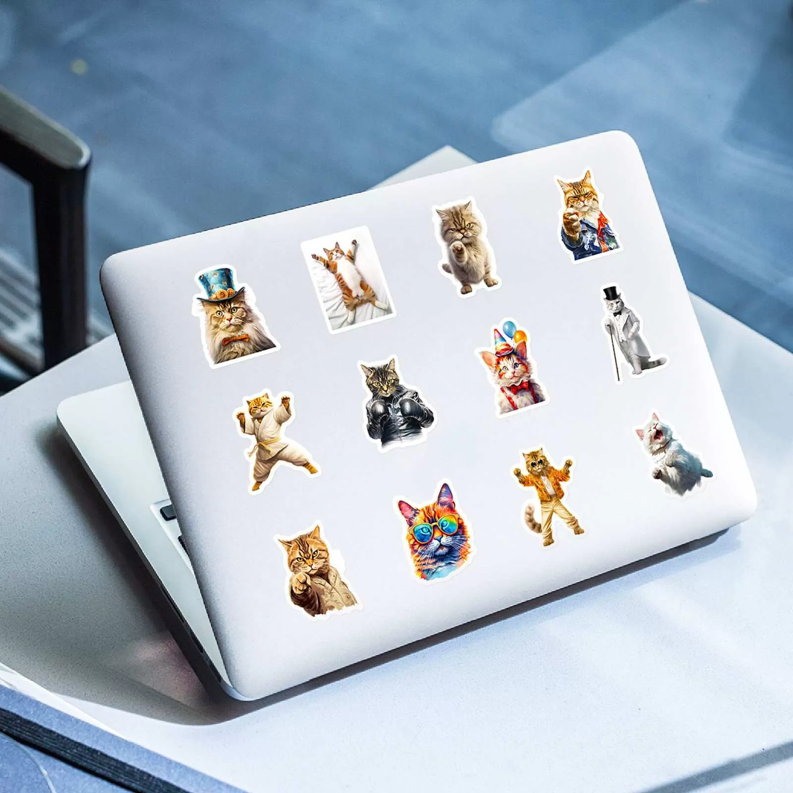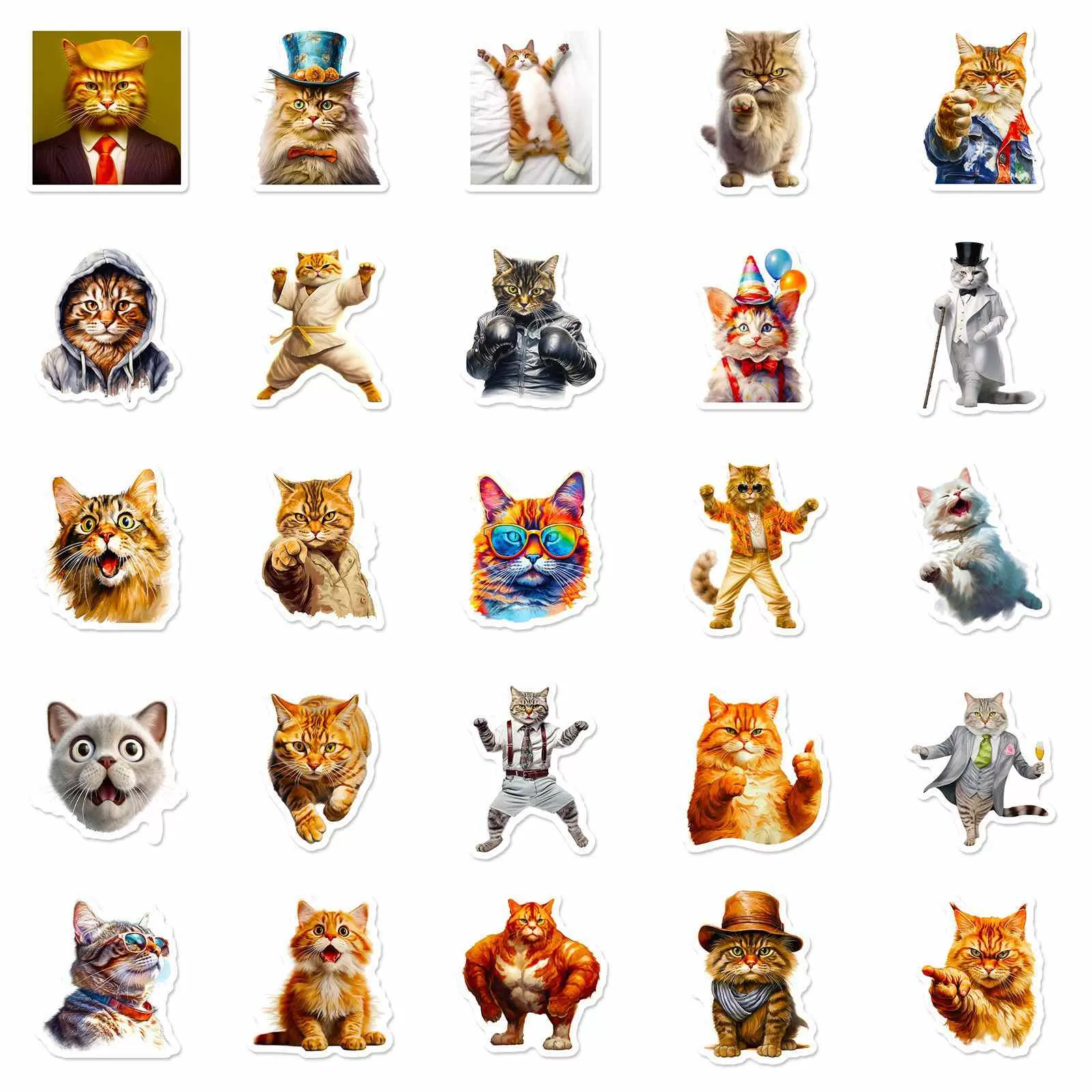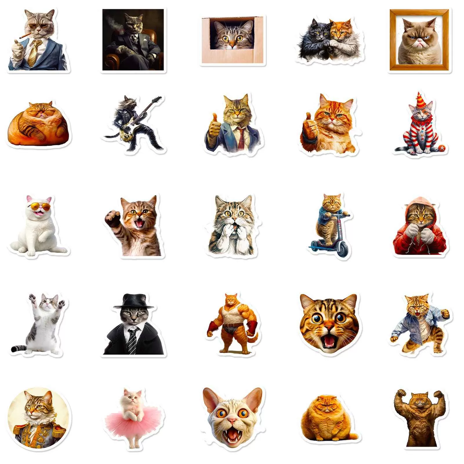 JIELEN 50 PCSドレス猫ステッカー-ラップトップ、電話、ジャーナル、スクラップブッキング、防水ステッカーパック用のかわいい動物ビニールデカールとコスチューム