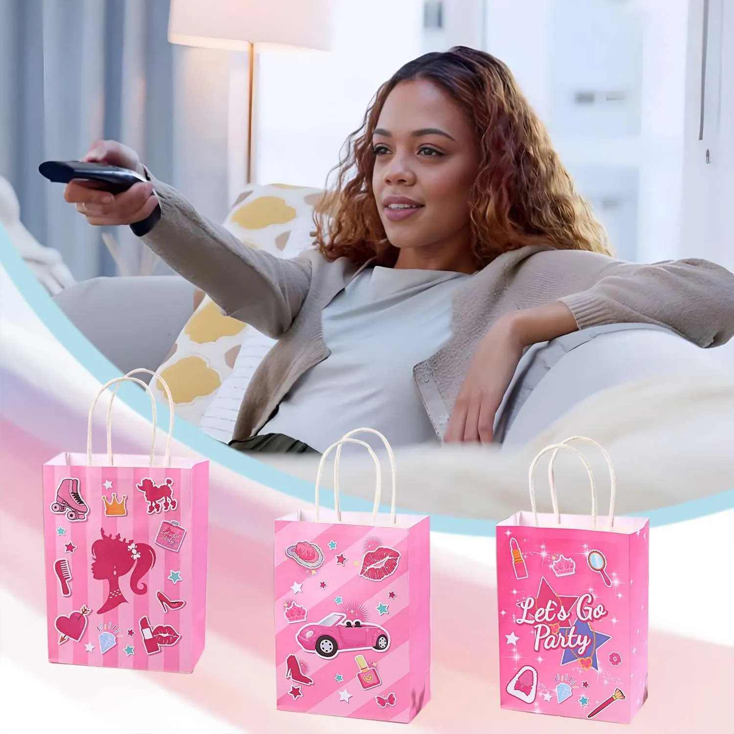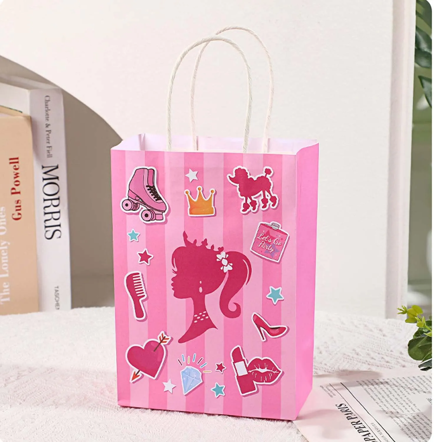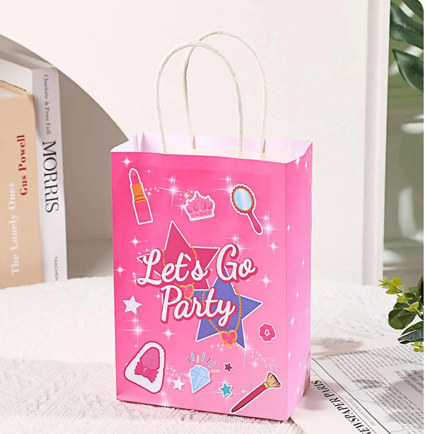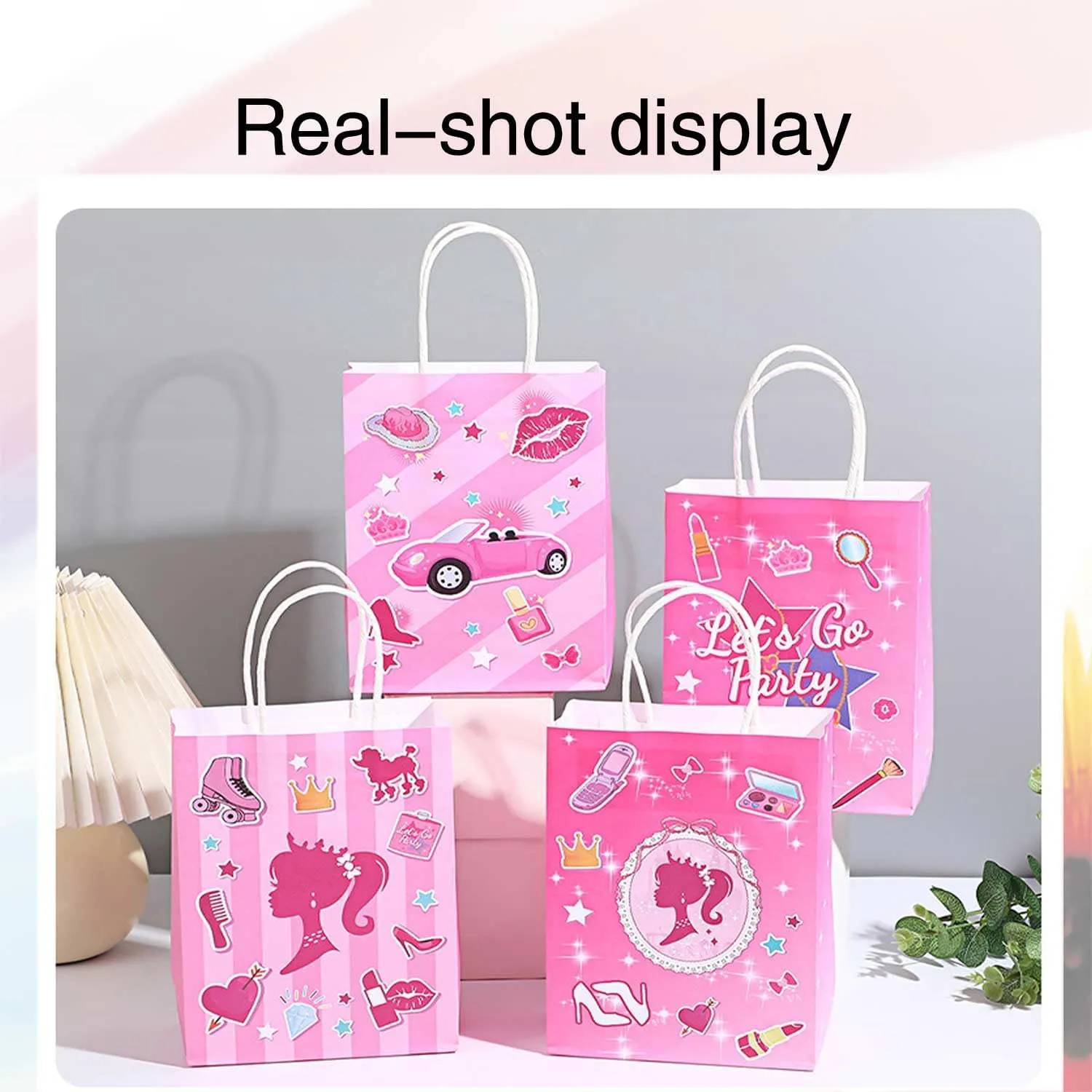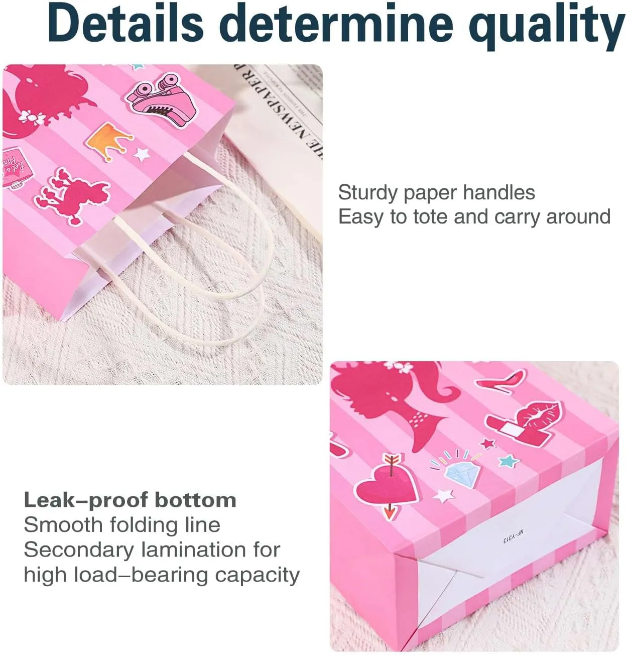 JIELENの16個入りピンクのギフトバッグ、プリンセスギフトバッグ、ピンクのお土産バッグ、ギフトペーパーバッグ、ショッピングバッグ、クラフト紙のトートバッグがあります。