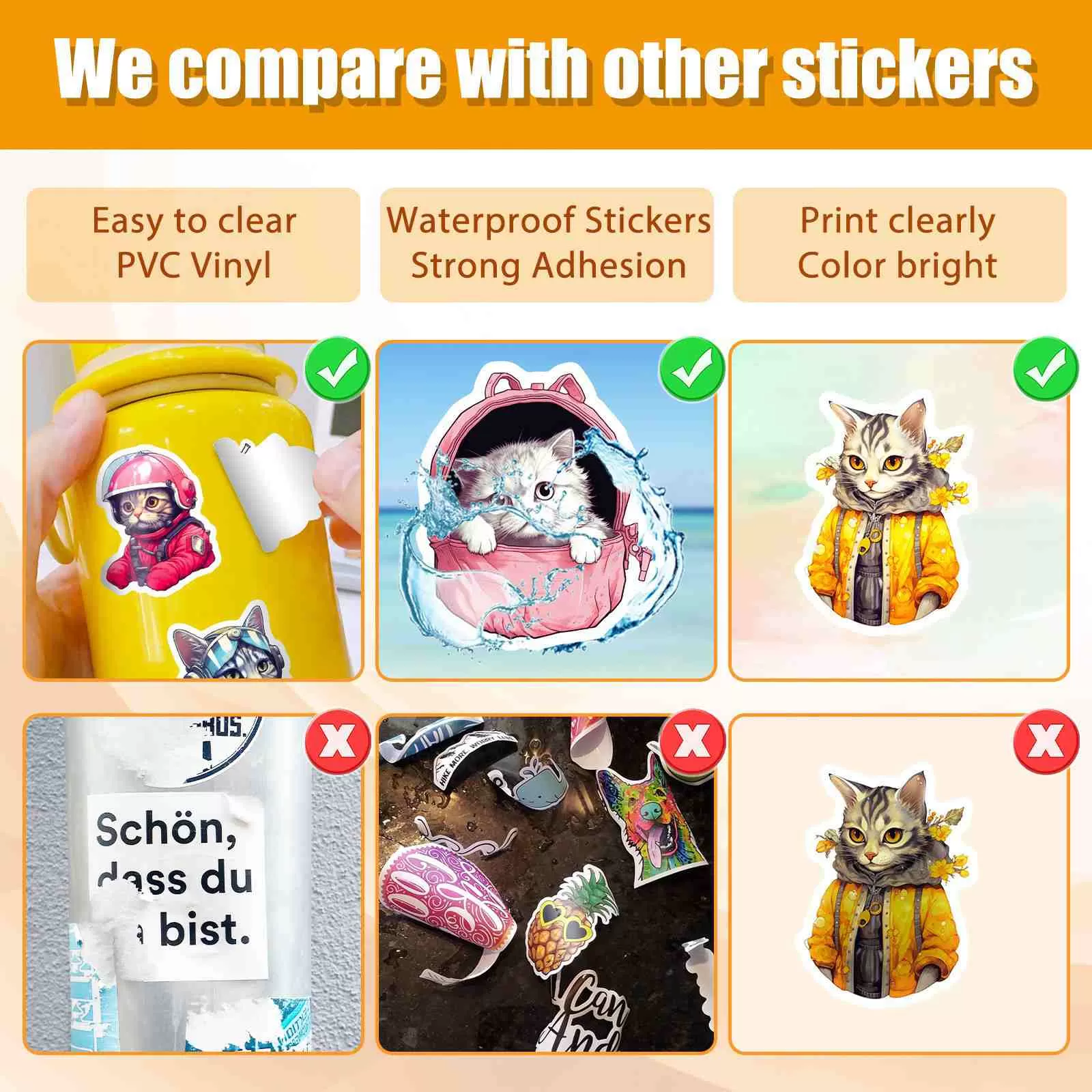 プレミアム素材&耐久性:これらのかわいい猫のステッカーは、マット仕上げの防水ビニールで作られています。彼らは水、傷、および紫外線退色に耐え、あなたの装飾的なデザインがラップトップ、水筒、および電話ケースで長持ちすることを保証します。